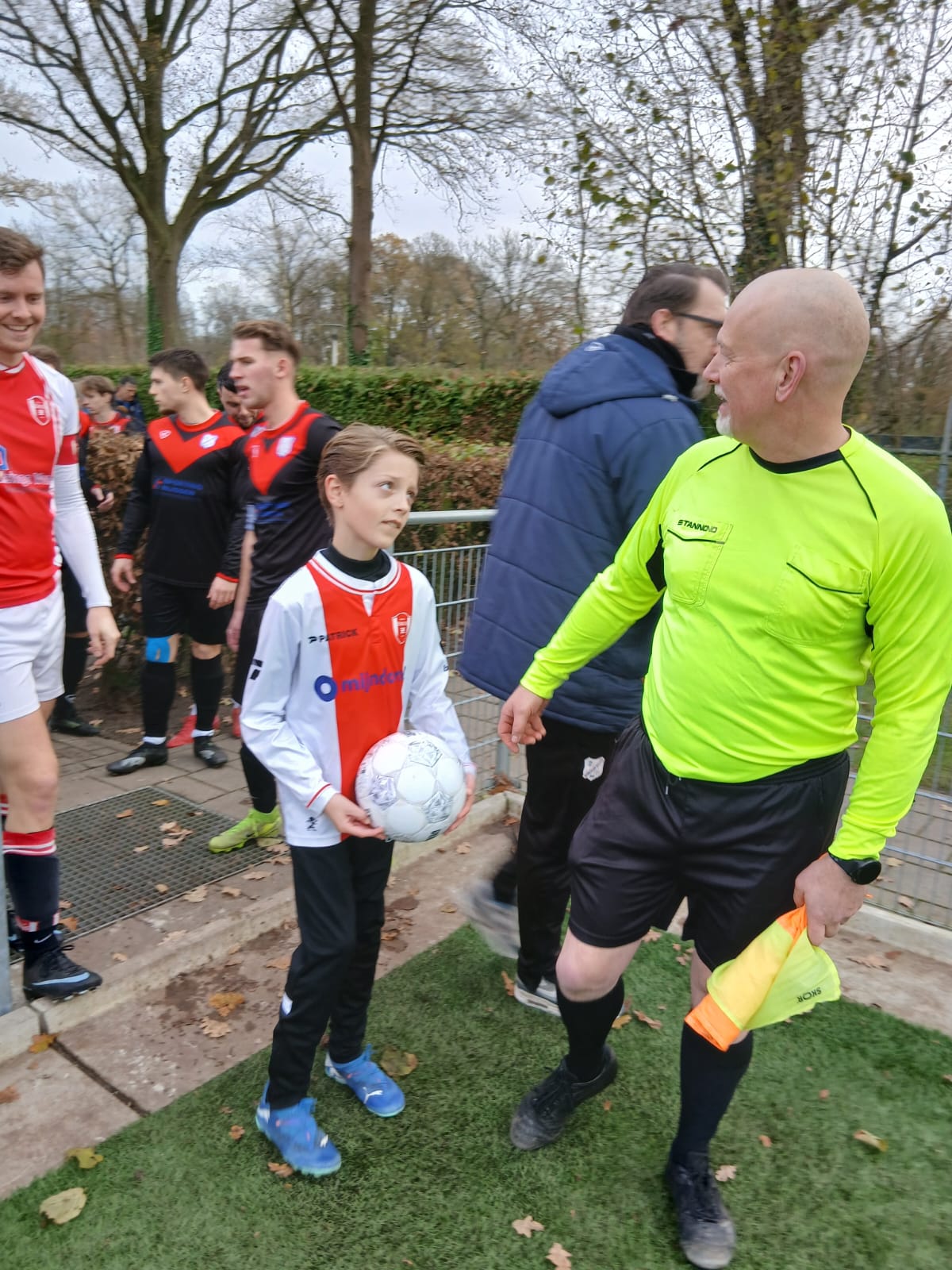dus later gaat hij ook met Tim het veld op. Dan mag hij intrappen met de